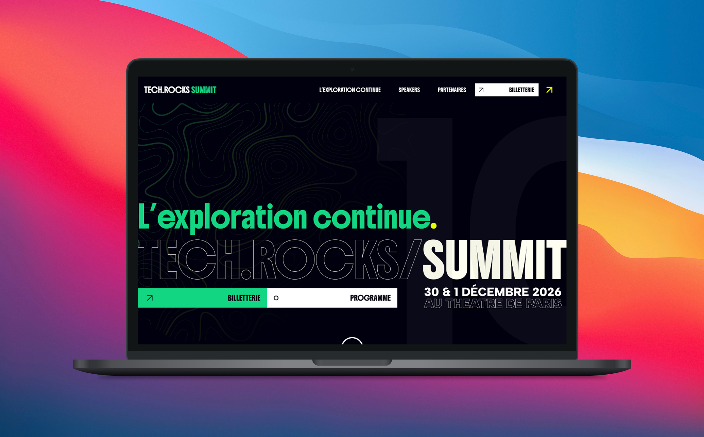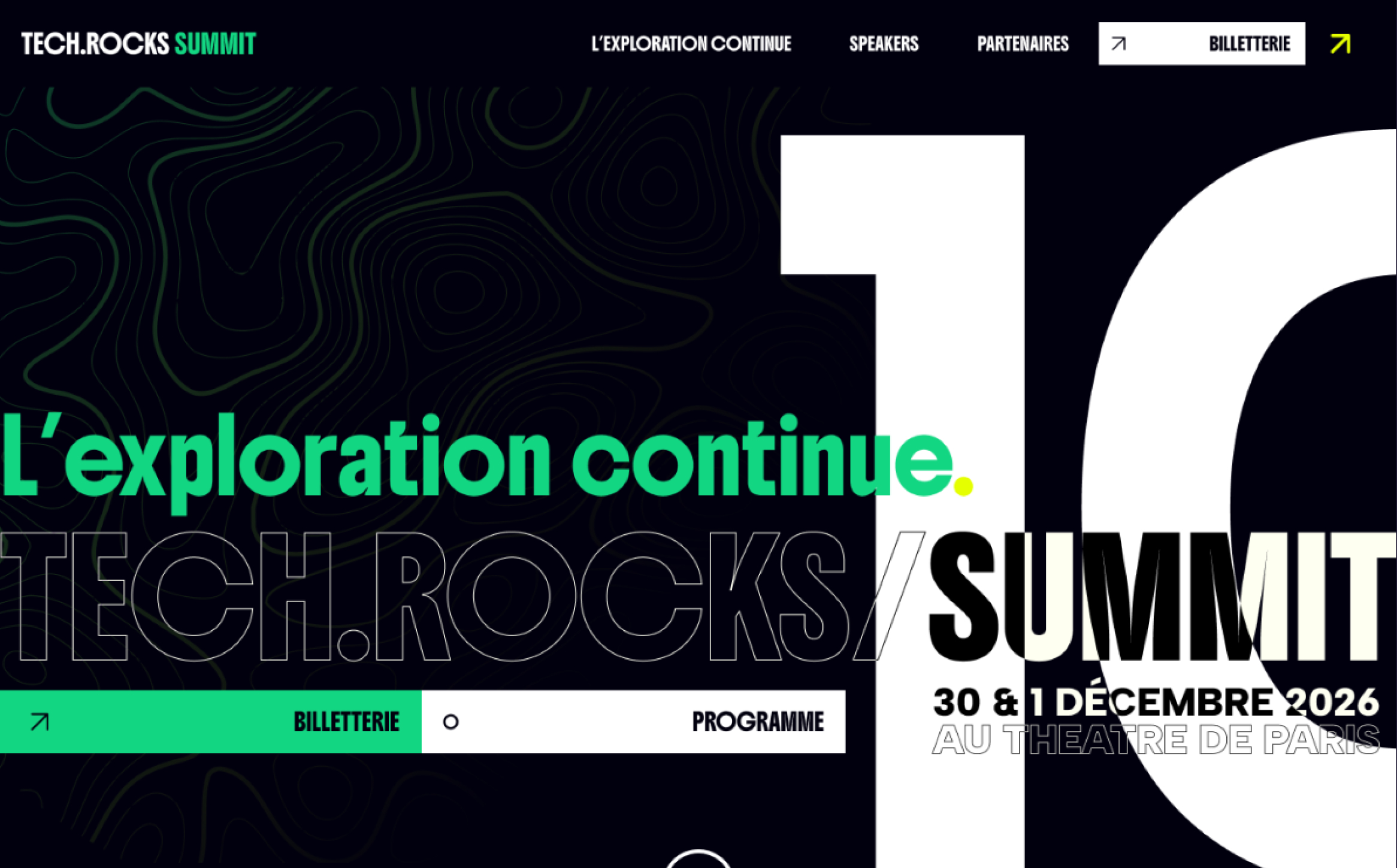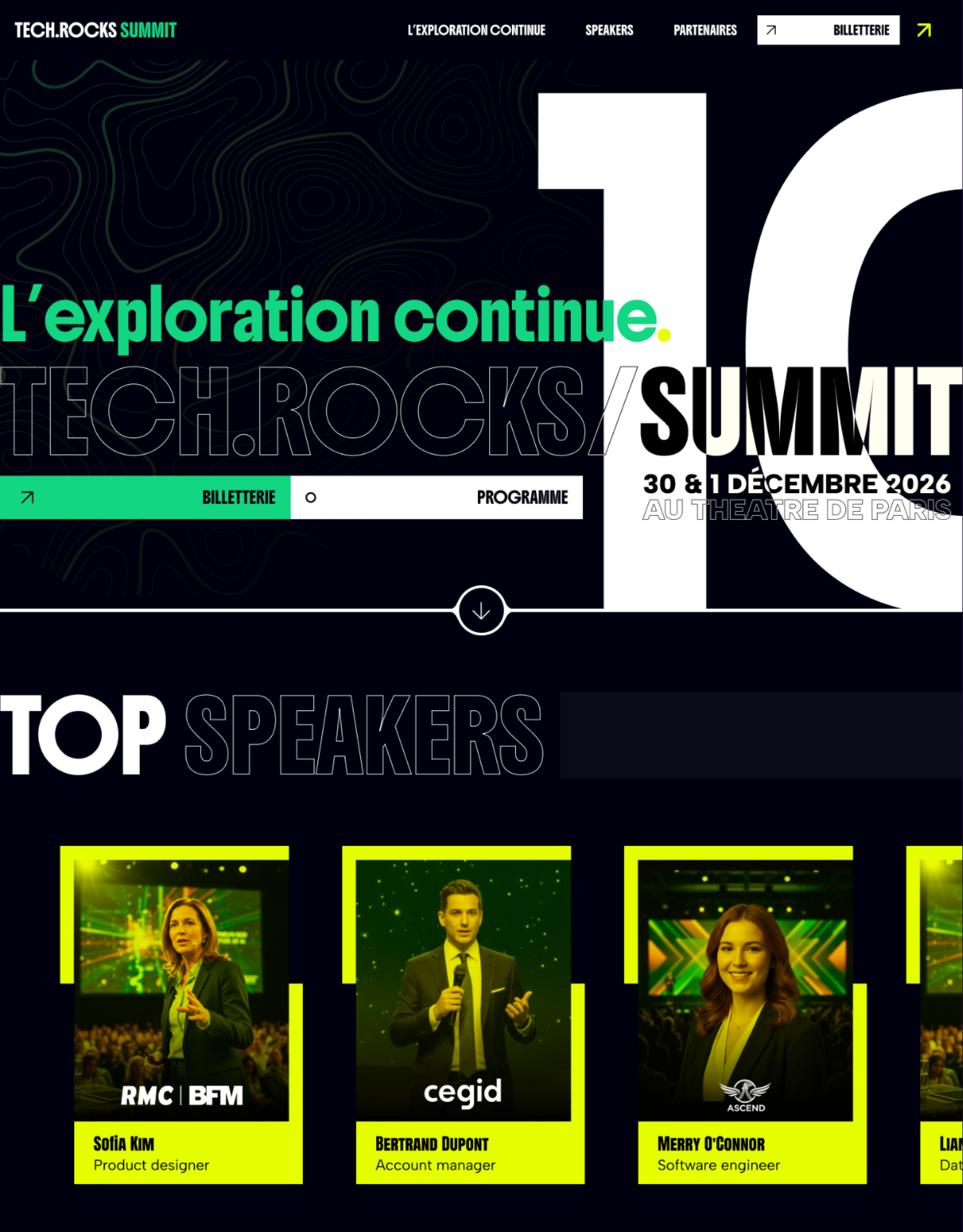 Refonte complète du site et de la direction artistique des 10 ans du Tech.Rocks Summit, avec une expérience digitale immersive.