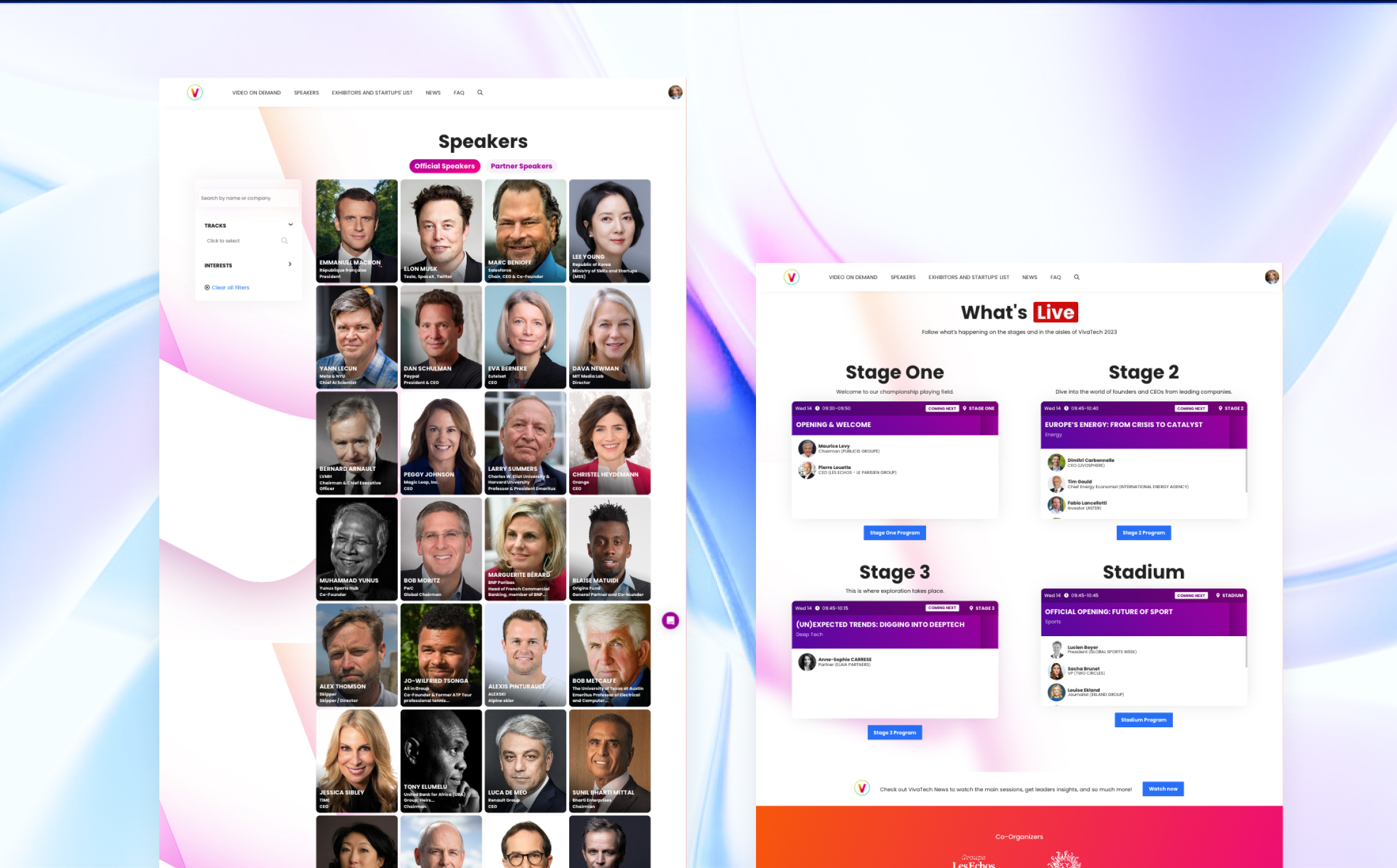 Conception et développement complet de la plateforme digitale de Viva Technology sur trois éditions, avec une expérience immersive et interactive.